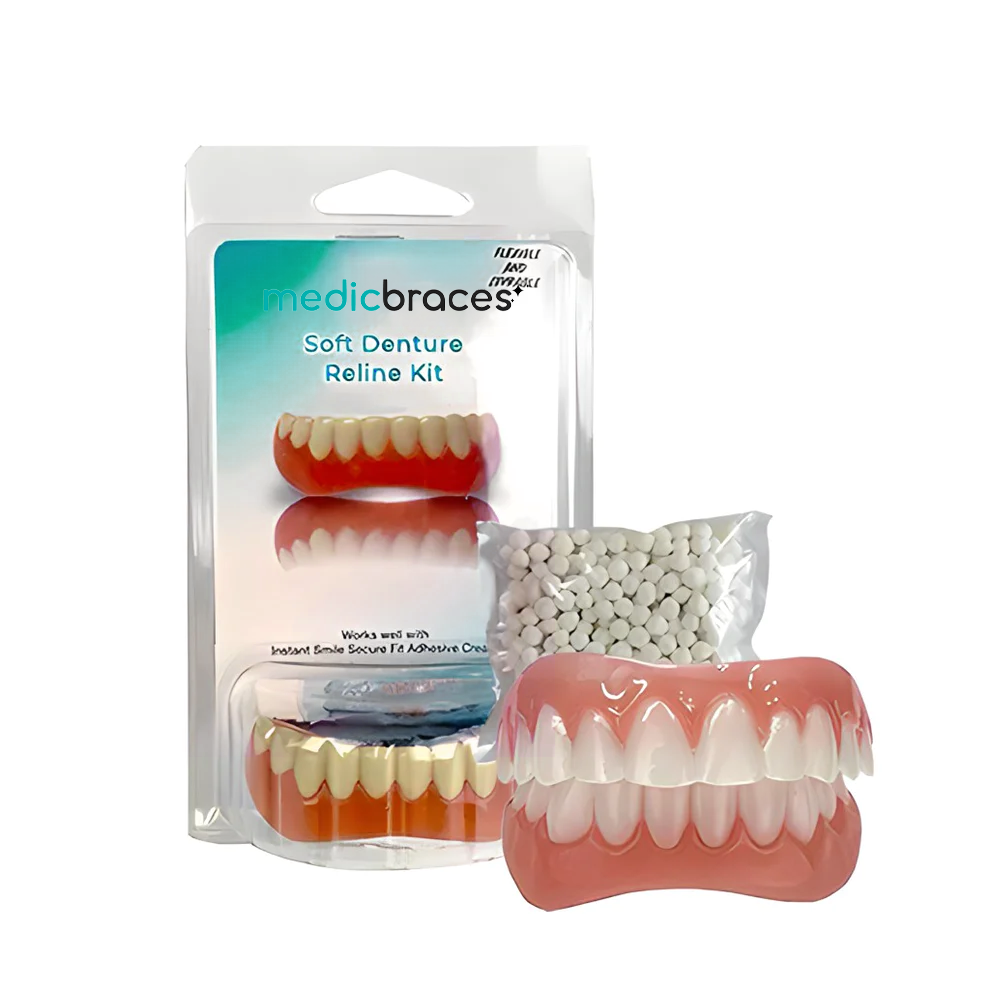 Get a perfect smile instantly with our relining kit. Our turnkey solution, made from high-quality materials such as medical silicone suitable for oral use, promises a precise fit, replicating the feel of natural teeth.